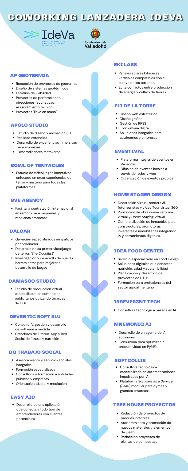 El espacio de Coworking gratuito que ofrece el Ayuntamiento de Valladolid en su Agencia de Innovación y Desarrollo Económico, dentro del proyecto Valladolid Now, cuenta con más de 50 personas que trabajan en 18 proyectos. Son autónomos, emprendedores, pymes y micro pymes de Valladolid.