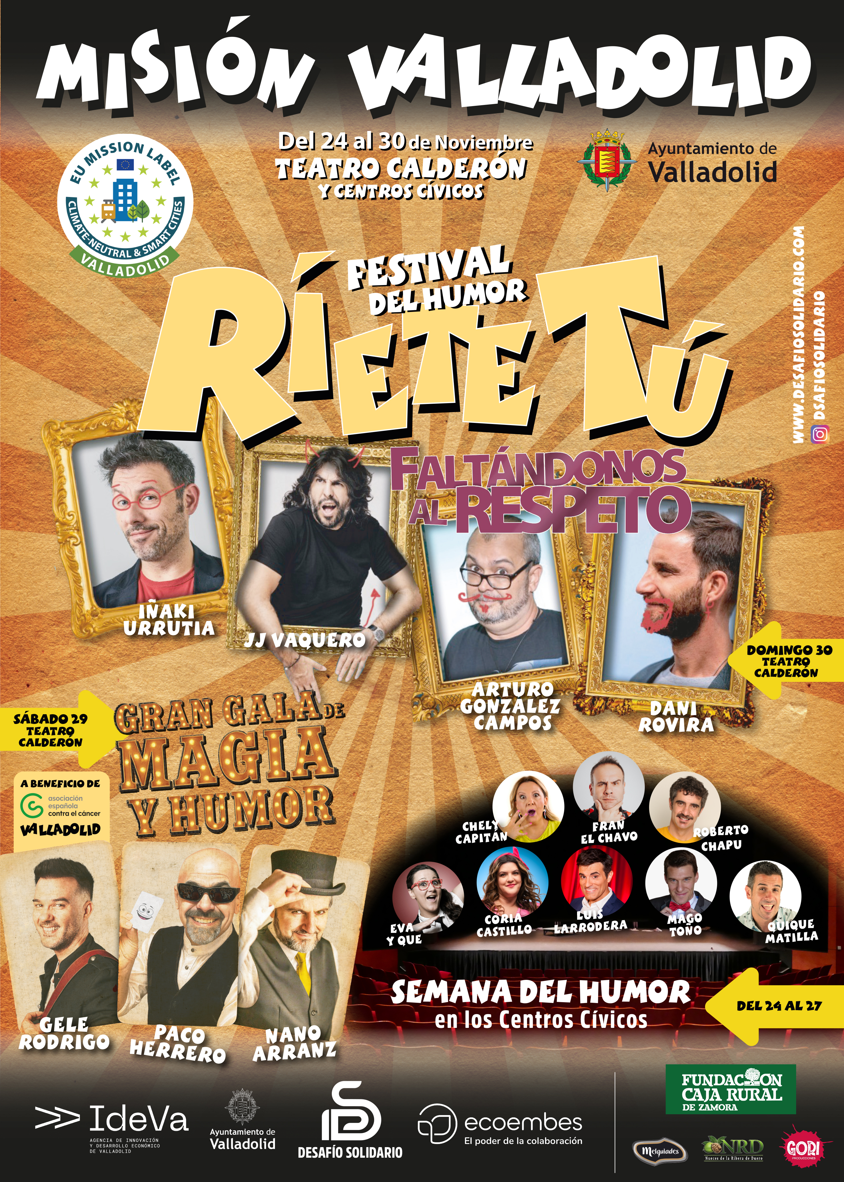 En clave de humor y magia, Gele Rodrigo, Paco Herrero y Nano Arranz actuarán en el Teatro Calderón el 29 de noviembre a las 20:00h; y el 30 de noviembre, a la misma hora lo harán Iñaqui Urrutia, J.J. Vaquero, Arturo González Campos y Dani Rovira.