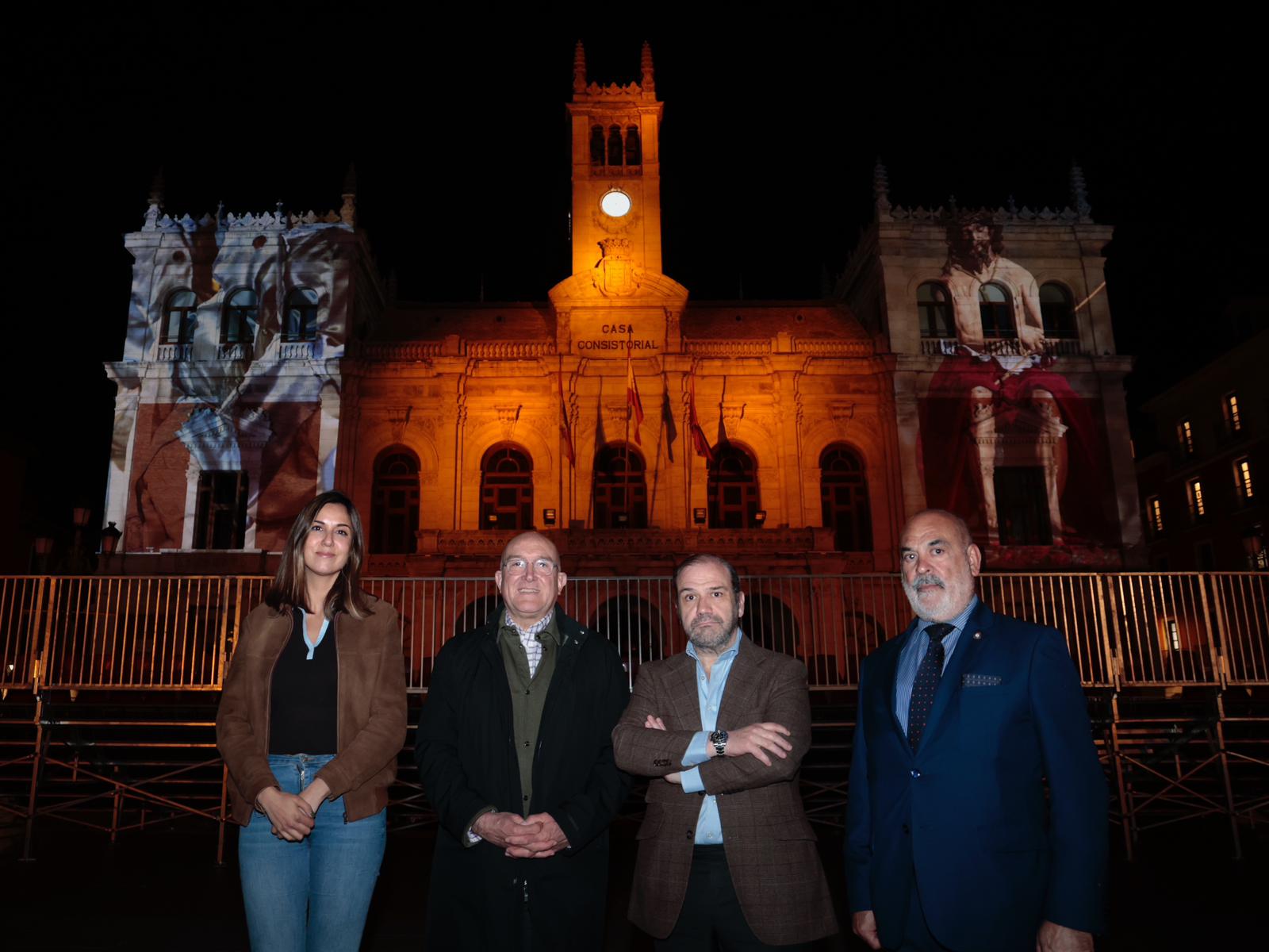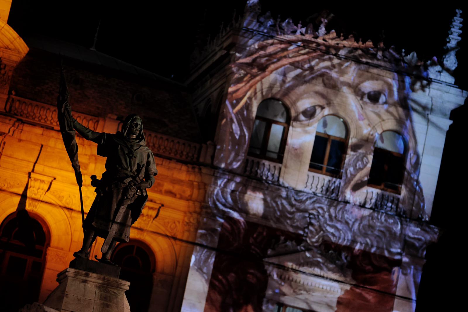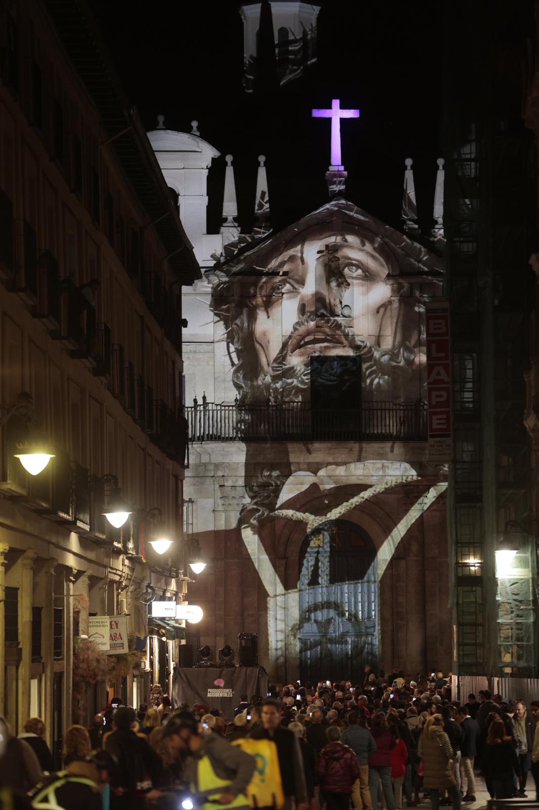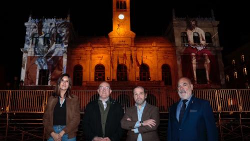 El Ayuntamiento de Valladolid, a través de su Agencia de Innovación y Desarrollo Económico, y en colaboración con la Junta de Cofradías de Semana Santa de Valladolid, ha estrenado esta tarde-noche unas proyecciones arquitectónicas de gran formato que magnifica la imaginería de la Semana Santa en dos edificios representativos de la ciudad (uno civil y otro religioso): la Casa Consistorial y la Iglesia Penitencial de la Santa Vera Cruz.